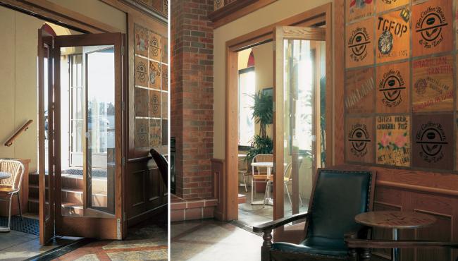 - Half-width door panels attach to door jambs to facilitate the centre-fold function